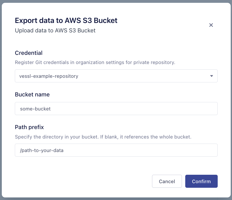 You can import AWS S3 or GCP GCS to your VESSL Run workload. You can export your run results to them.
