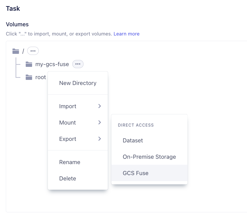 This feature is currently on beta. It is only supported when you want to attach GCS on VESSL Managed GCP Clusters.You can just mount the GCS with FUSE on your VESSL Run. You will be able to read/write as if filesystem. The data is used only by your workload and the access is only alive for your VESSL Run’s lifecycle.