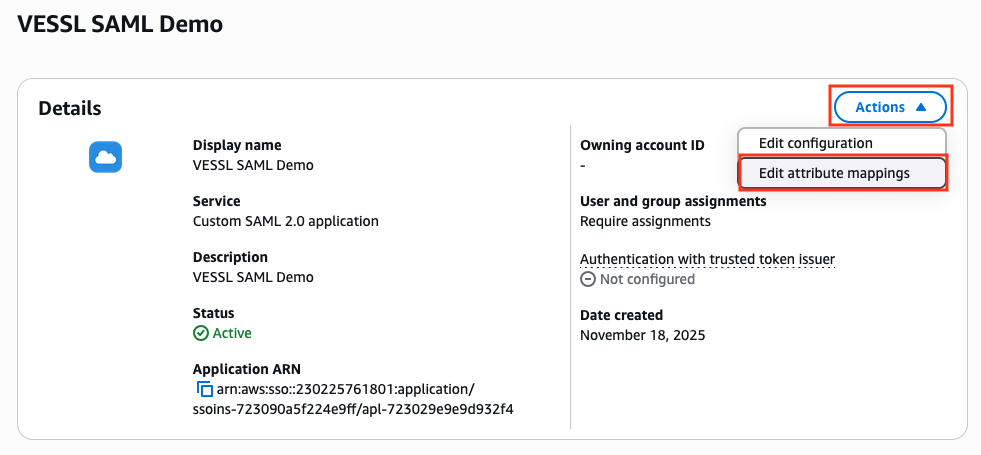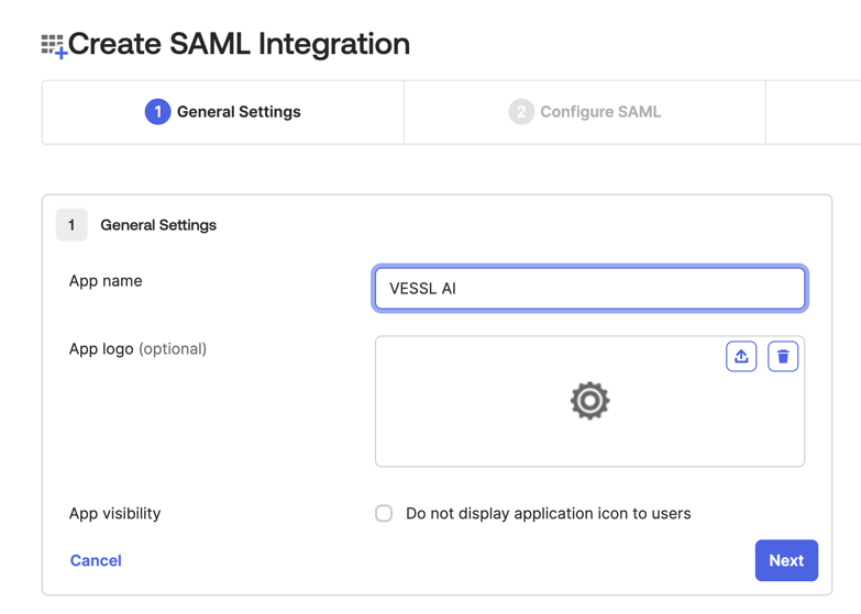 https://app.vessl.ai/{your-org-name}/saml/metadata - Assertion Consumer Service (ACS) URL: