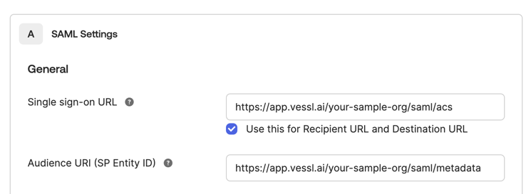 For each organization, VESSL is using the following format for SAML service provider configuration. Be sure to replace{your-org-name} with your organization’s name in the following URLs: