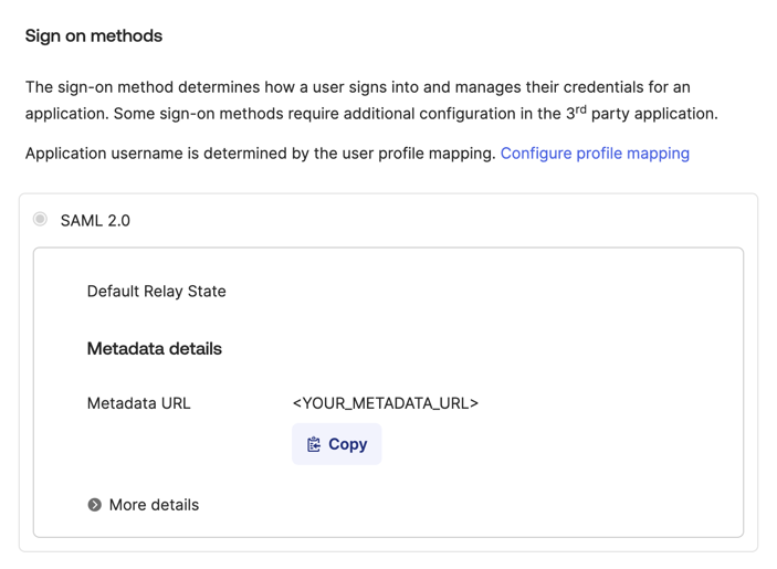 Copy the App Federation Metadata URL from Section 3. This will be needed in the next step.