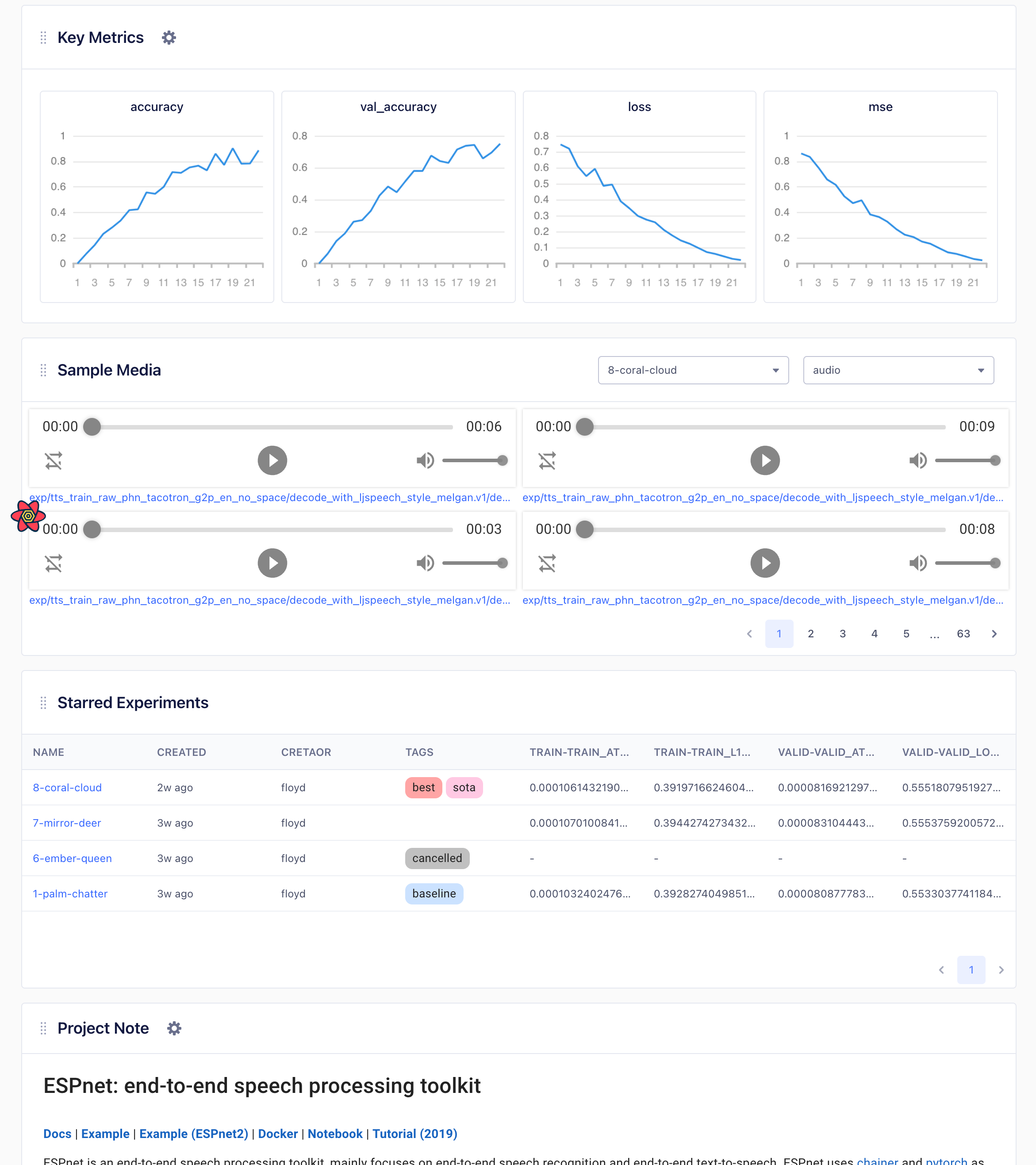 - Key Metrics: Keep track of essential evaluation metrics of your experiments such as accuracy, loss, and MSE.