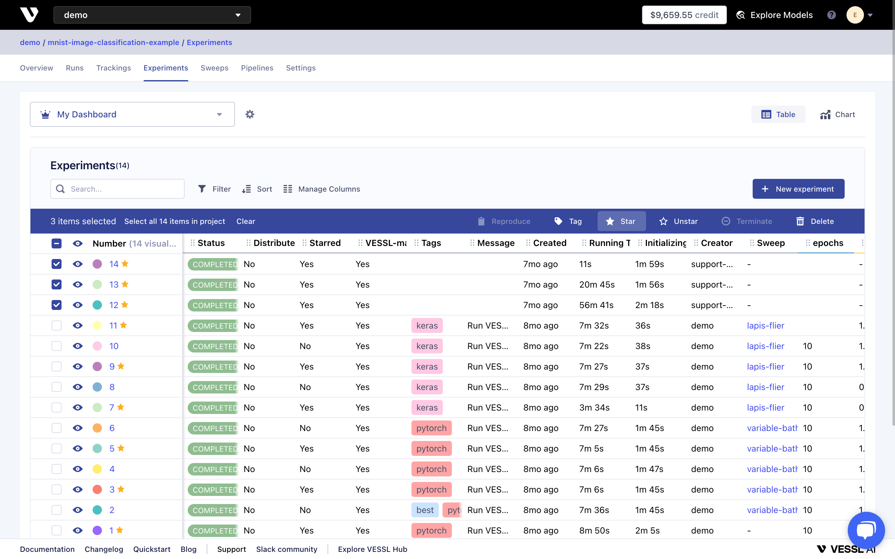 - Starred Experiments: Star and keep track of meaningful experiments.