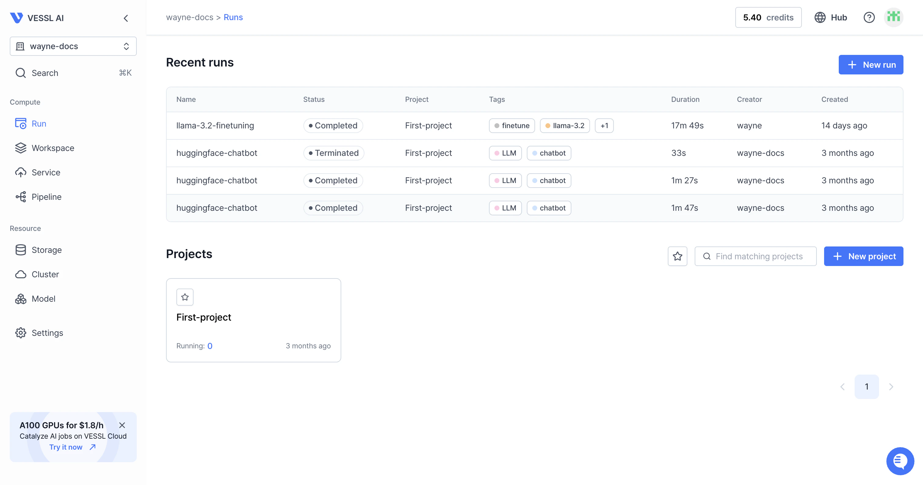 ℹ️ This documentation is for the VESSL MLOps product. For the new VESSL Cloud docs, see docs.cloud.vessl.ai.